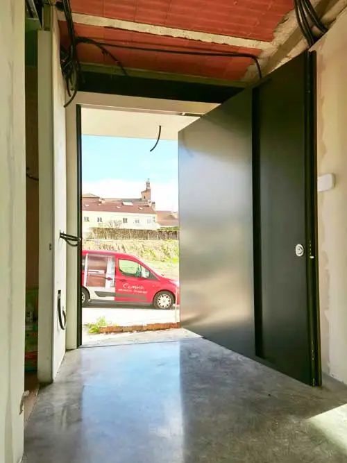 Puerta pivotante acorazada modelo Forja Embutida lisa con tirador integrado