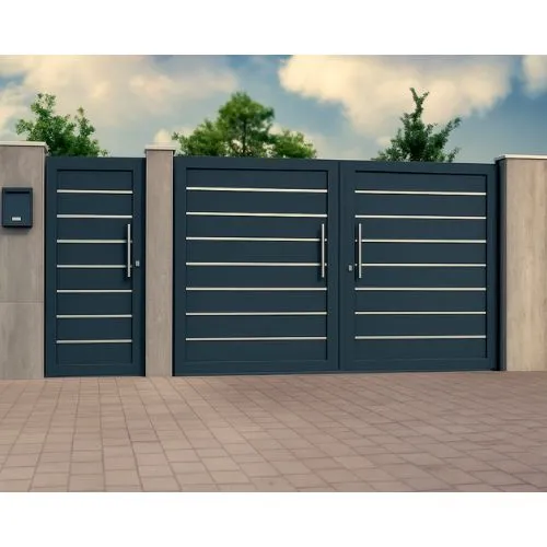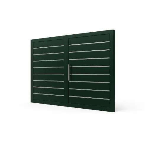 Portón batiente exterior de aluminio con posibilidad de 1 o 2 hojas abatibles.