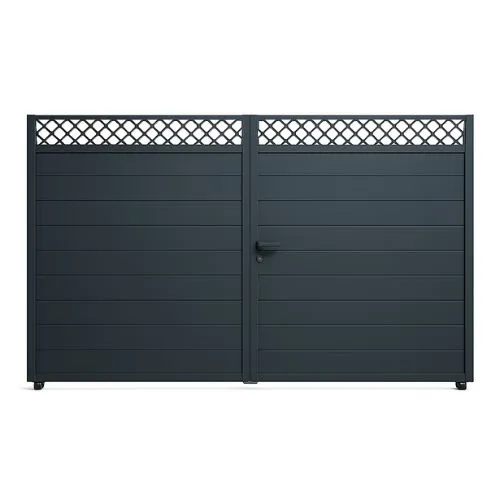 Portón batiente exterior de aluminio con posibilidad de 1 o 2 hojas abatibles.