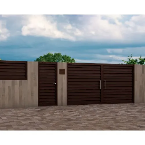 Portón batiente exterior de aluminio con posibilidad de 1 o 2 hojas abatibles.