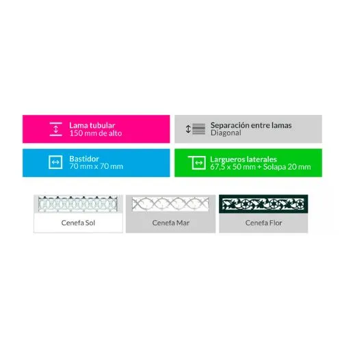 - Cenefas disponibles: cenefa mar, cenefa sol, cenefa flor