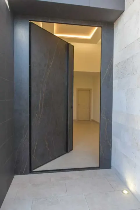 Puertas en madera, aluminio, acero corten, porcelánico o piedra natural. Diseños estándar o personalizados.